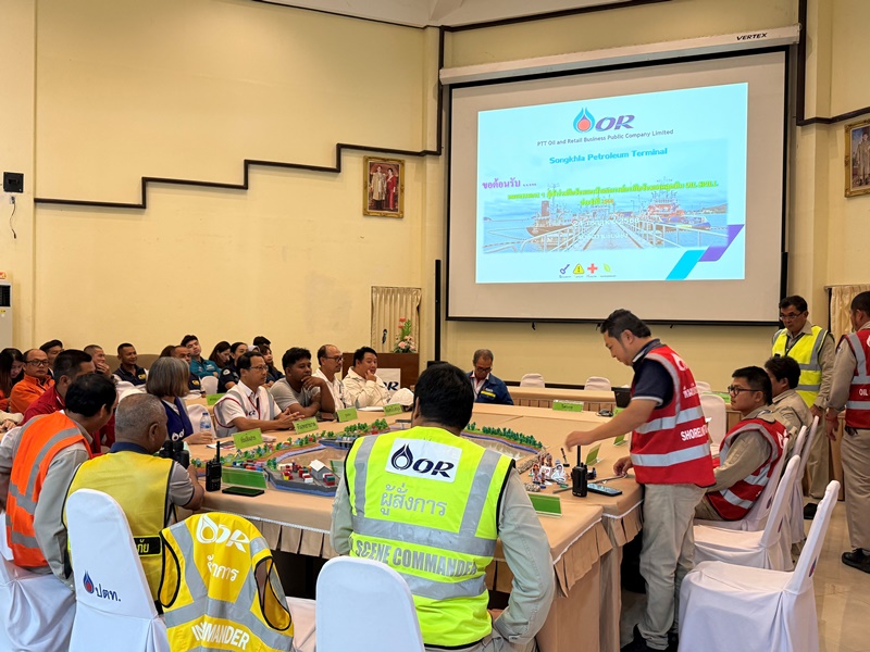 Prima Marine PCL Group and Songkhla Petroleum Terminal, together with PTT Oil and Retail Business PCL, participated in a water pollution prevention exercise focused on (Oil Spill) response. The goal was to enhance preparedness and ensure an effective emergency response in the event of an incident. The exercise also aimed to build confidence among surrounding communities and strengthen collaboration between the petroleum terminal, local agencies, hospitals, and relevant organizations during emergencies. This drill received cooperation from more than 19 participating such as the Marine Department, the Songkhla Provincial Disaster Prevention and Mitigation Office, the Office of Natural Resources and Environment, and community leaders, etc. agencies from various sectors, helping to test the effectiveness of the response plan, inspect equipment, and train personnel in incident control and minimizing potential impacts.