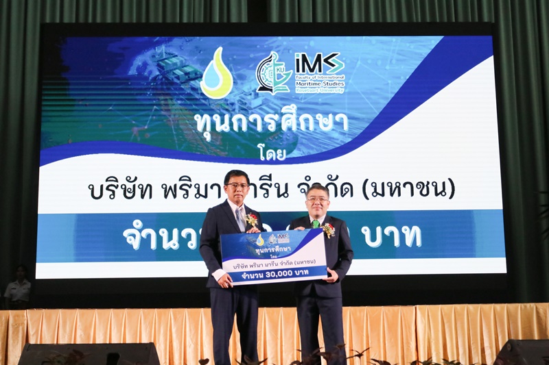 The 2025 Academic Year Uniform and Insignia Ceremony for the Faculty of International Maritime Studies, Kasetsart University, Sriracha Campus On October 10, 2025, at the Physical Education Building, Kasetsart University, Sriracha Campus, Ms. Ruengrat Thongdee-nok, Managing Director, and Capt. Karun Yimyong, Crew Manager, representatives from Prima Marine Public Company Limited, congratulated and supported the Faculty of International Maritime Studies with scholarships. This ceremony aims to support and encourage the students to achieve their goals and build a bright future.