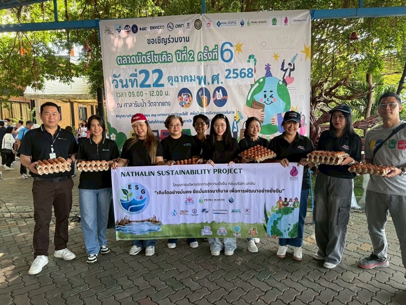 Nathalin Group participated in the "Bottles for Eggs" recycling market project, Year 2, at Wat Chak Daeng. On October 22, 2015, Nathalin Group participated in the "Bottles for Eggs" project at Wat Chak Daeng, Khum Bang Kachao. The project aims to promote proper and sustainable waste management in the community. This activity reflects the power of collaboration from all sectors, including businesses, communities, and network partners, with the temple at the center. This effort aims to create sustainability by maximizing the benefits of everyday items.