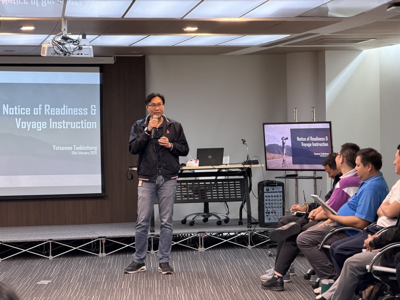 บรรยากาศงานอบรมหัวข้อ “BREAKDOWN CONTROL & COMMERCIAL CONCERNS, NOTICE OF READINESS AND VOYAGE INSTRUCTION” จัดขึ้นเพื่อเสริมสร้างความรู้และความเข้าใจด้านการควบคุมเหตุขัดข้อง ความล้มเหลวในกระบวนการทำงาน พร้อมนำเสนอแนวทางการควบคุมรวมถึงการบริหารความเสี่ยง และ ประเด็นเชิงพาณิชย์ ตลอดจนขั้นตอน Notice of Readiness (NOR) และ Voyage Instruction อย่างครบถ้วน