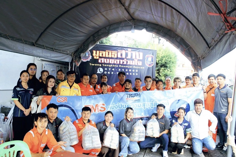 บริษัท ทรูธ มารีไทม์ เซอร์วิสเซส จํากัด (TMS) ผู้ดำเนินการเรือ Offshore Support Vessel (OSV) อย่างครบวงจรภายใต้กลุ่มบริษัท พริมา มารีน จำกัด (มหาชน) นำทีมผู้บริหาร พนักงาน และคนประจำเรือ ร่วมกันจัดเตรียมอาหารกล่อง อาหารแห้ง นม น้ำดื่ม และสิ่งของจำเป็นส่งมอบให้แก่ มูลนิธิสว่างสงขลาร่วมใจ และกองทัพภาคที่ 2 จังหวัดสงขลาเพื่อช่วยเหลือผู้ประสบภัยในพื้นที่